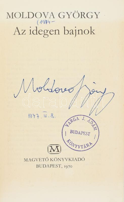 Moldova György: Az idegen bajnok. A szerző által ALÁÍRT példány. Bp., ... https://www.darabanth.com/de/477-Fernauktion/477.0/Bucher/Bucher-Andere-kuriositaten~2000020/Moldova-Gyorgy-Az-idegen-bajnok-A-szerzo-altal-ALAIRT-peldany-Bp-1970-Magveto-Kiadoi~II3250856