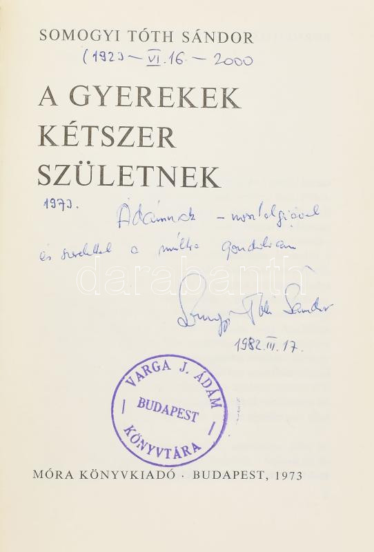 Somogyi Tóth Sándor: A gyerekek kétszer születnek. DEDIKÁLT! Bornemissza László rajzaival. Sirály Könyvek. Bp., 1973, Magvető. Kiadói kartonált papírkötés.