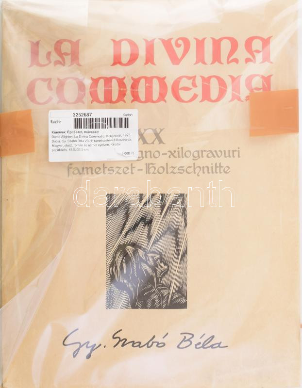 Dante Alighieri: La Divina Commedia. Kolozsvár, 1976, Dacia. Gy. Szabó Béla 20 db fametszetével illusztrálva. Magyar, olasz, román és német nyelven. Kiadói papírkötés, 43,5x33,5 cm.