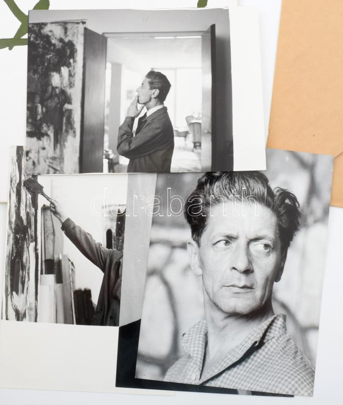 Domanovszky Endre. (Kiállítási katalógus). A katalógust tervezte: Kass János. Bp., 1971, Budapesti Történeti Múzeum - Vármúzeum. Egészoldalas, fekete-fehér és színes reprodukciókkal illusztrálva. Kiadói tűzött papírkötés, az elülső borító sarkán törésnyommal. + 4 db Domanovszky Endre festőművészt ábrázoló, fekete-fehér fotó, 18x13 cm
