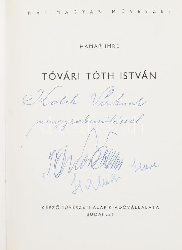 Hamar Imre: Tóvári Tóth István. A szerző, és a művész kettős DEDIKÁCIÓJÁVAL. Mai Magyar Művészet. Bp.,1973,Képzőművészeti Alap. Kiadói kartonált papírkötés.