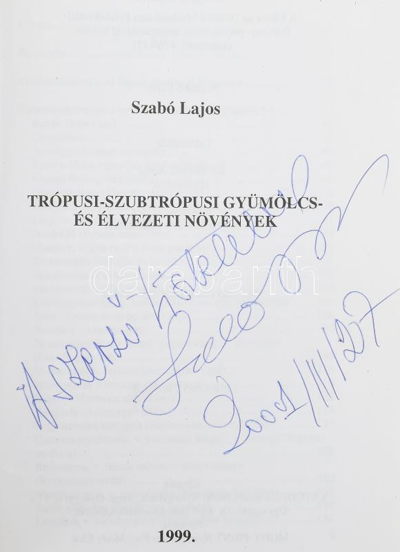 Szabó Lajos: Trópusi-szubtrópusi gyümölcs- és élvezeti növények. DEDIK... https://www.darabanth.com/de/477-Fernauktion/477.0/Bucher/Bucher-Gastronomie-und-Gartnerei~2000024/Szabo-Lajos-Tropusi-szubtropusi-gyumolcs-es-elvezeti-novenyek-DEDIKALT-Nyiregyhaza-~II3242402