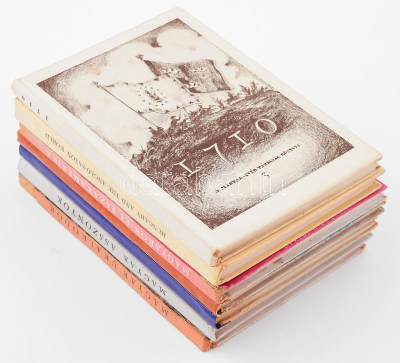 7 db magyar történelem témájú officina könyv:Magyar uralkodók, Magyar asszonyok, Magyarok és Észak-Amerika, Hungary and the Anglo Saxon World, 1710. Parasztságunk élete, Magyarok Latin-Amerikában. Bp., 1930-1940 Kiadói papír kötésben, jó állapotban,
