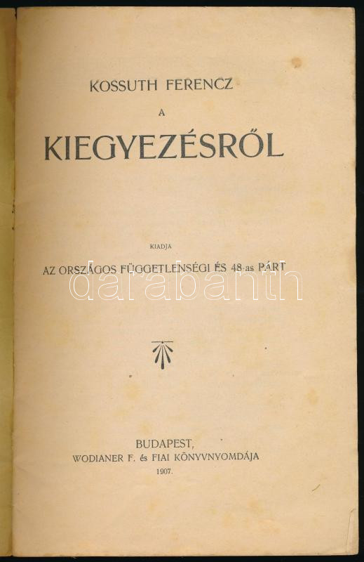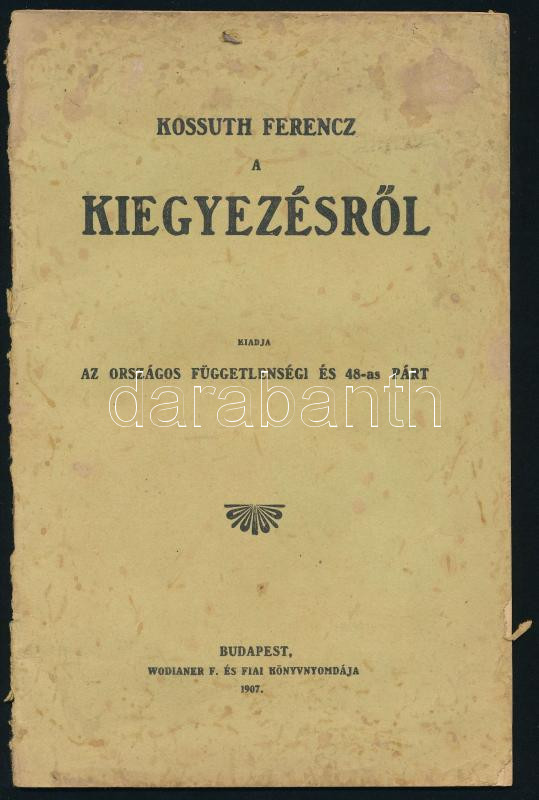Kossuth Ferencz: -- a Kiegyezésről. Kiadja az Országos Függetlenségi és 48-as Párt.