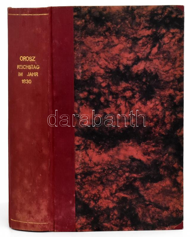 Orosz, [József] Joseph: Ungarns gesetzgebender Körper auf dem Reichstage zu Pressburg im Jahr 1830. Sammt Actenstücken und Anmerkungen von - - . I-II. köt. [Egy kötetben]. Leipzig, 1831-1832, Paul Gotthelf Kummer, XVI+387+(3) p.; 251 p. Német nyelven. Átkötött félvászon-kötésben, helyenként kissé foltos lapokkal, egy-két kijáró lappal.