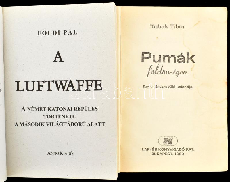 Földi Pál: A Luftwaffe. H.n., é.n., Anno Kiadó. Kiadói papírkötés. + T... https://www.darabanth.com/de/477-Fernauktion/477.0/Bucher/Bucher-Militaria~2000023/Foldi-Pal-A-Luftwaffe-Hn-en-Anno-Kiado-Kiadoi-papirkotes-plus-Tobak-Tibor-Pumak-fo~II3249194