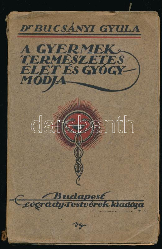 Bucsányi Gyula: A gyermekek természetes élet- és gyógymódja. Bp.,1919, Légrády, 228+4 p. A borító Végh Gusztáv munkája. Kiadói szecessziós papírkötés, sérült gerinccel, a könyvtest szétvált és elvált a borítótól, de teljes.