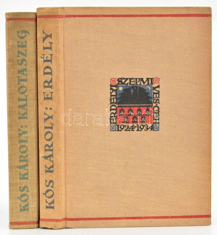 Kós Károly: Erdély. Az Erdélyi Szépmíves Céh 10 éves jubileumára kiadott díszkiadás III. Kolozsvár, 1934, Erdélyi Szépmíves Céh, 88 p.+60 t. Kós Károly egészoldalas, eredeti linómetszeteivel. Szövegközi illusztrációkkal. Kiadói egészvászon-kötés. + Kós Károly: Kalotaszeg. Kolozsvár, [1939], Erdélyi Szépmíves Céh, 278 p. Kós Károly szövegközi és egészoldalas linómetszeteivel. Kiadói egészvászon-kötés.
