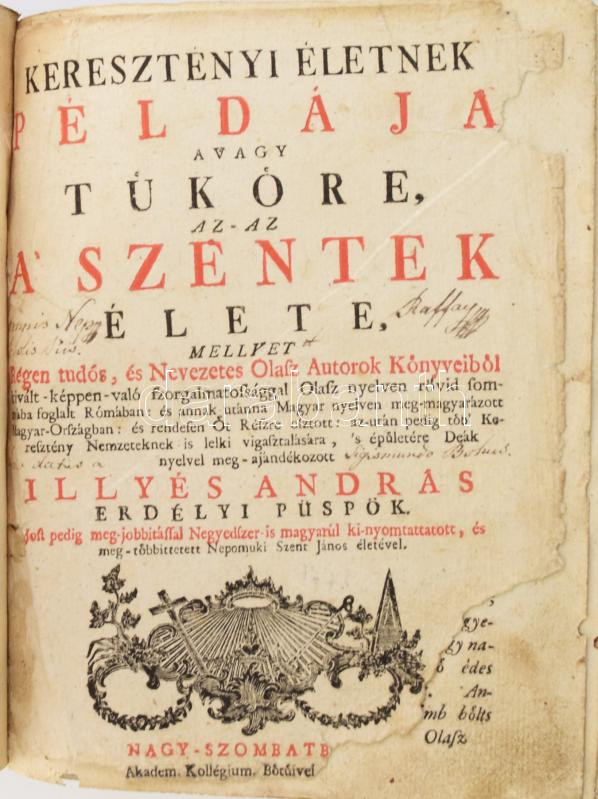 Illyés András: Keresztyeni életnek peldája avagy tüköre, az az: a'... https://www.darabanth.com/de/477-Fernauktion/477.0/Bucher/Bucher-Religion~2000032/Illyes-Andras-Keresztyeni-eletnek-peldaja-avagy-tukore-az-az-a-szentek-elete-Nagy-Szomb~II3249431