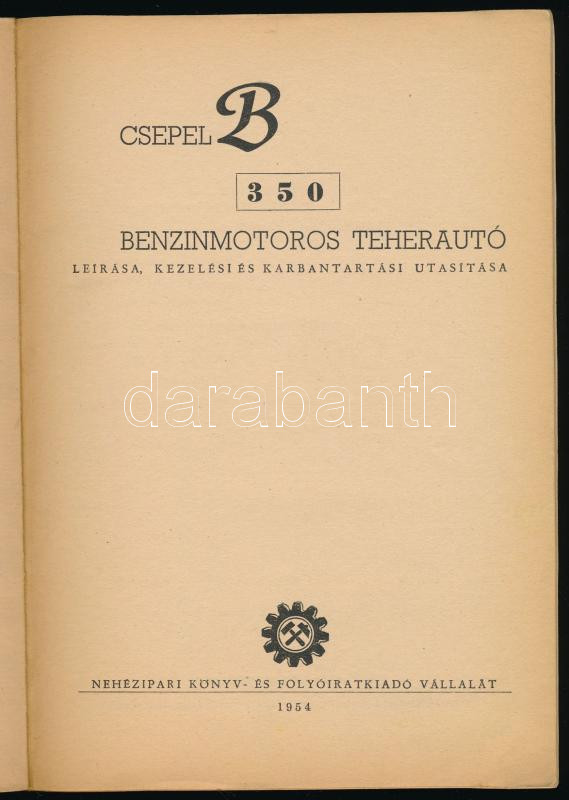 Csepel B 350 benzinmotoros teherautó leírása, kezelési és karbantartás... https://www.darabanth.com/de/477-Fernauktion/477.0/Bucher/Bucher-Technik~2000029/Csepel-B-350-benzinmotoros-teherauto-leirasa-kezelesi-es-karbantartasi-utasitasa-Bp-1954~II3253070