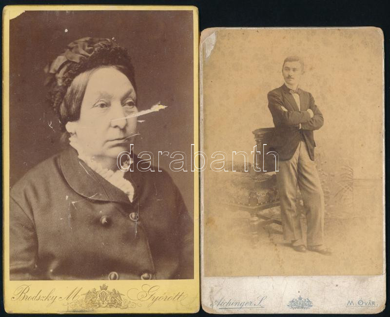 cca 1870-1890 Női és férfi portré, 2 db keményhátú fotó Brodszky győri... https://www.darabanth.com/de/477-Fernauktion/477.0/Fotografie/Foto~2000001/cca-1870-1890-Noi-es-ferfi-portre-2-db-kemenyhatu-foto-Brodszky-gyori-es-Aichinger-Mosonm~II3251137