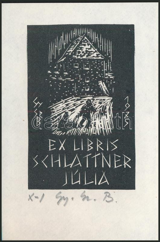 Beschreibung: Gy. Szabó Béla (1905-1985): Ex libris Schlattner Júlia. Fametszet, papír, jelzett, 6,5×4 cm