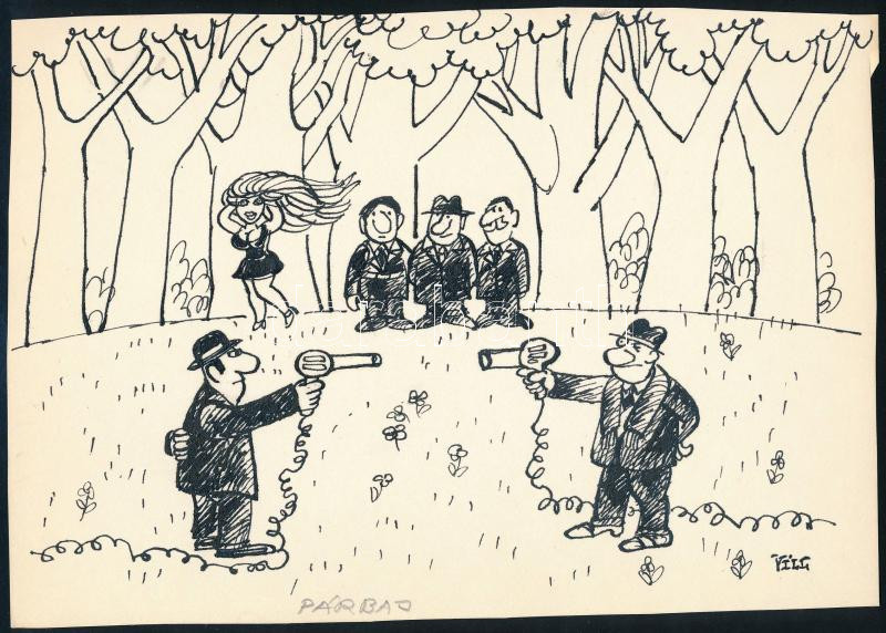 Földes Vilmos (1942-): Párbaj (karikatúra). Tus, papír, jelzett. 14,5×... https://www.darabanth.com/de/477-Fernauktion/477.0/Gemalde-und-Grafiken/Gemalde-und-Grafiken~1000011/Foldes-Vilmos-1942-Parbaj-karikatura-Tus-papir-jelzett-14-5C39721-cm~II3192542
