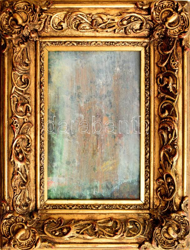 A. M. 88 jelzéssel: Piknik. Akvarell, falemez. Elmosódott 24,5x16 cm. Hátoldalán Szépművészeti Múzeum 736/80 sz. bírálati címkéjével. Dekoratív fakeretben.