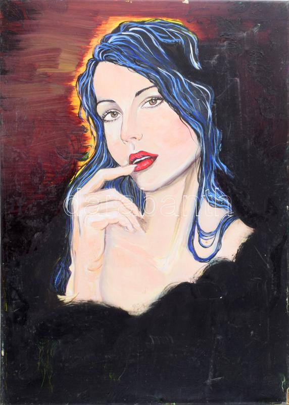 Beschreibung: Jelzés nélkül: Csábító hölgy portréja. Olaj, vászon. 70×50 cm