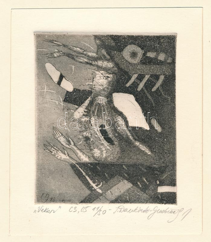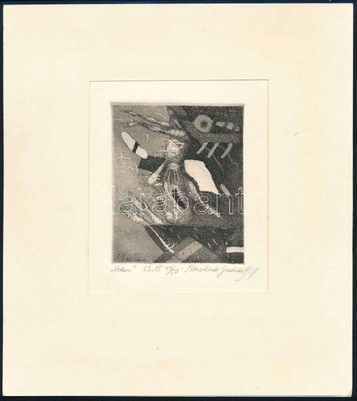 Beschreibung: Olvashatatlan jelzéssel: "Vakar" 11/30, rézkarc, papír, jelzett, paszpartuban, 9,5×8 cm