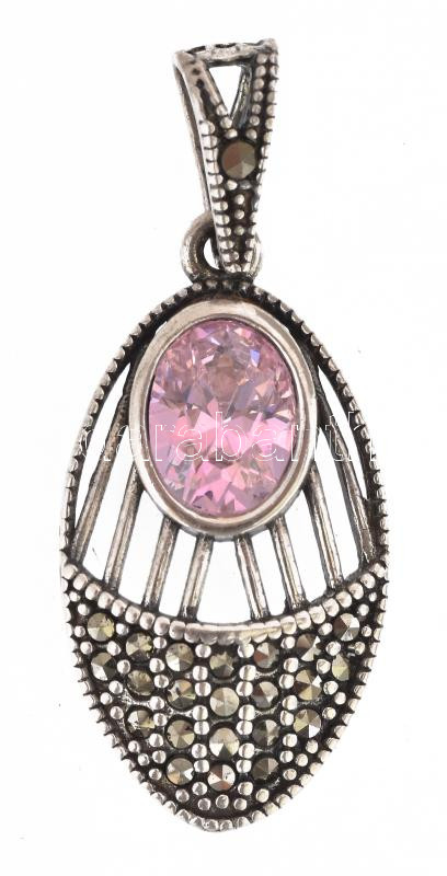 Beschreibung: Ezüst(Ag) medál rózsaszín kővel, h: 3,5 cm, bruttó: 3,2 g