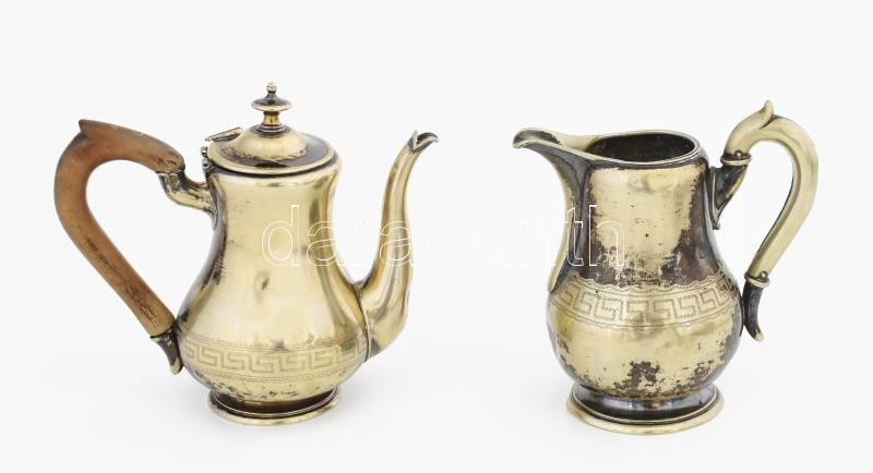 Beschreibung: 2 db kiöntő, XIX. alpakka, fa, 14 cm