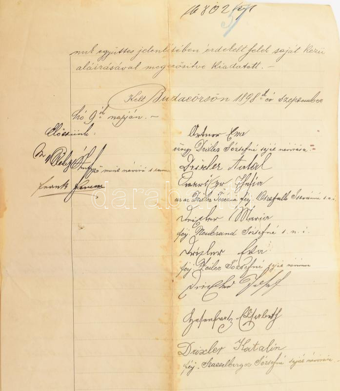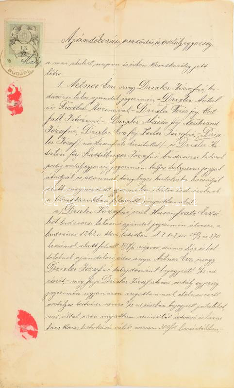 1898. szeptember 9. Budaörs, Ajándékozási szerződés és osztályegyezség... https://www.darabanth.com/de/477-Fernauktion/477.0/Kunst-Dokumente-andere-Sammelgebiete/Dokument~1000023/1898-szeptember-9-Budaors-Ajandekozasi-szerzodes-es-osztalyegyezseg-a-budaorsi-Drixler-~II3245817