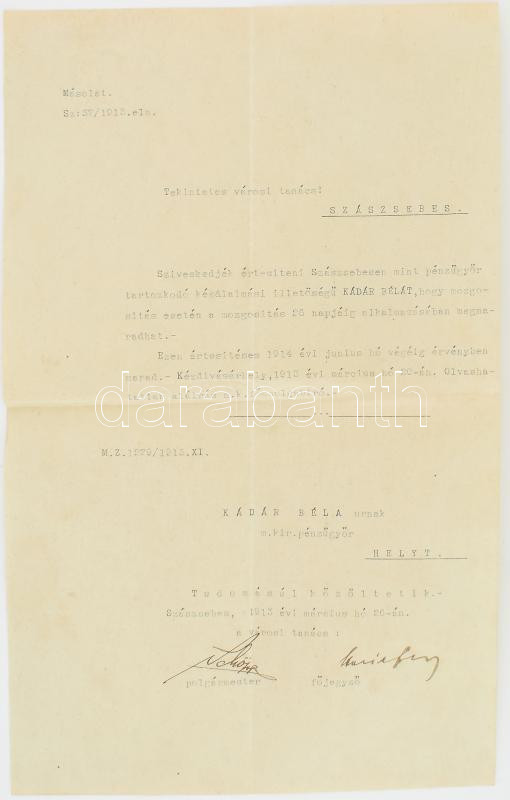 1913 Szászsebes katonai mentesítő okirat, hajtott https://www.darabanth.com/de/477-Fernauktion/477.0/Kunst-Dokumente-andere-Sammelgebiete/Dokument~1000023/1913-Szaszsebes-katonai-mentesito-okirat-hajtott~II3248003