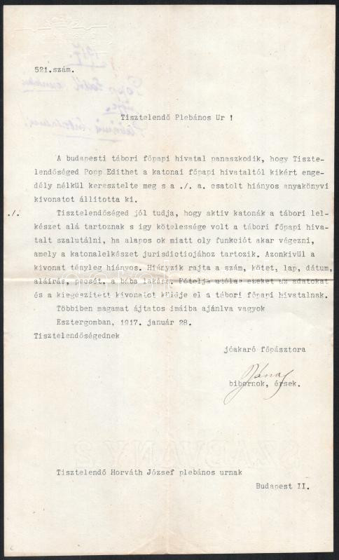 1917 Esztergomi hercegprímási fejléces papíron írt levél azonosítatlan... https://www.darabanth.com/de/477-Fernauktion/477.0/Kunst-Dokumente-andere-Sammelgebiete/Dokument~1000023/1917-Esztergomi-hercegprimasi-fejleces-papiron-irt-level-azonositatlan-bibornok-alairasC3~II3250606