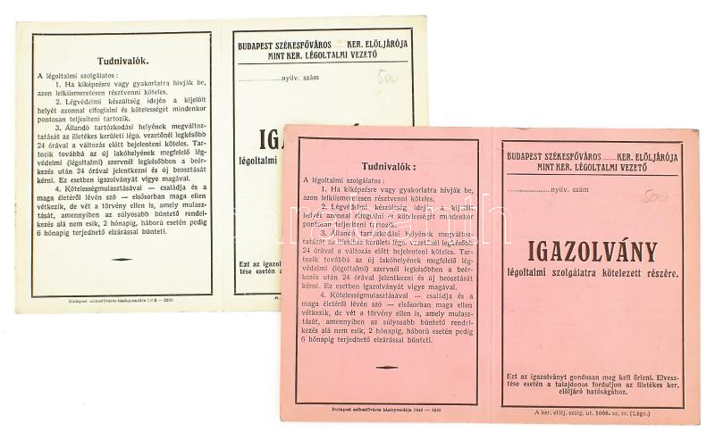 Beschreibung: 1940 2 db kitöltetlen légoltalmi igazolvány