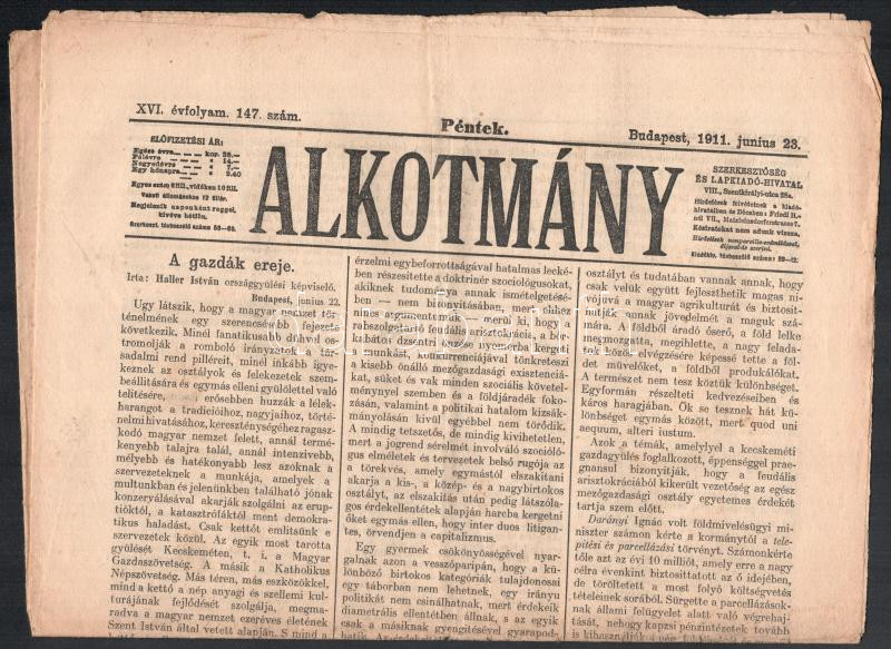 1911 Az Alkotmány c. folyóirat YVI. évf. 147. száma https://www.darabanth.com/de/477-Fernauktion/477.0/Kunst-Dokumente-andere-Sammelgebiete/Drucksachen~2000013/1911-Az-Alkotmany-c-folyoirat-YVI-evf-147-szama~II3246517
