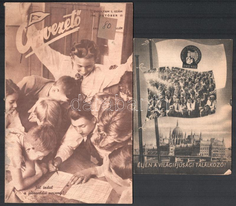 1948 Őrsvezető, az Úttörő Mozgalom havi folyóirata I. évf. 1. sz. (induló szám), 1948. okt. 15. Szerk.: Pajzs Istvánné. Kiadói tűzött papírkötés. + 1949 Világifjúsági Találkozó (VIT) Budapest, képes ismertető kiadvány, az Úttörő Mozgalom kiadása