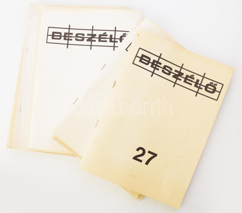1988-89 A Beszélő c. szamizdat kiadvány 23.-27. száma (össz. 5 db), tű... https://www.darabanth.com/de/477-Fernauktion/477.0/Kunst-Dokumente-andere-Sammelgebiete/Drucksachen~2000013/1988-89-A-Beszelo-c-szamizdat-kiadvany-23-27-szama-ossz-5-db-tuzve-jo-allapotban-23~II3253559