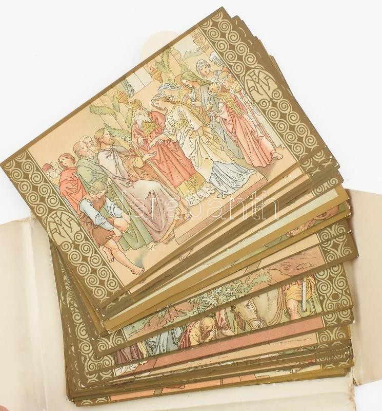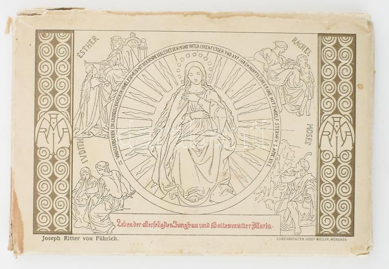 Leben der allerseligsten Jungfrau und Gottesmutter Maria, 29 db szentkép, Joseph von Führich illusztrációival, kissé foltos, sérült kiadói papírtokban, 11x7 cm körüli méretben