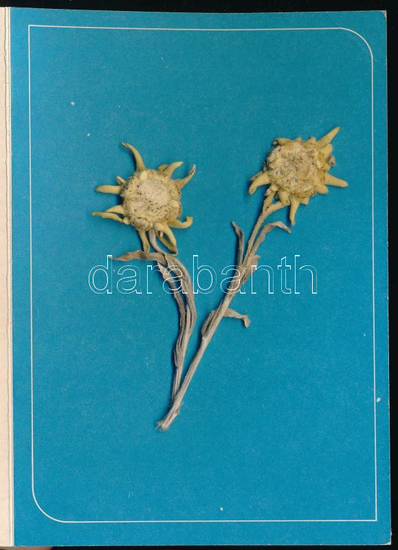 Beschreibung: "Pozdrav z Vysokych Tatier" / "Üdvözlet a Magas-Tátrából", üdvözlőlap szárított havasi gyopárral