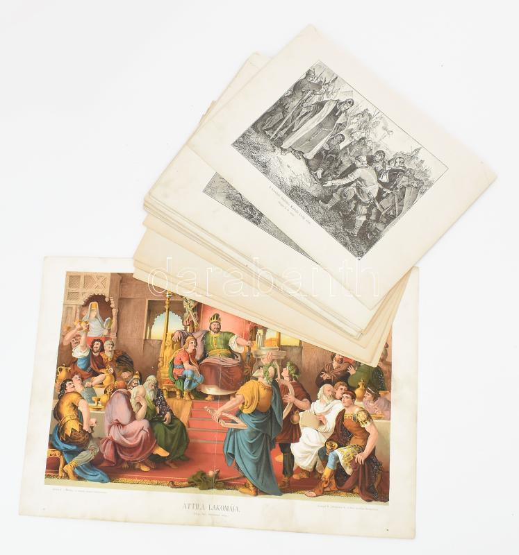 cca 1895-1900 Magyar történelmi képek, 19 db fekete-fehér + 1 db színes reprodukció (Szalay - Baróti: A magyar nemzet története melléklete), változó állapotban, lapméret: 20x27 cm és 27x39 cm