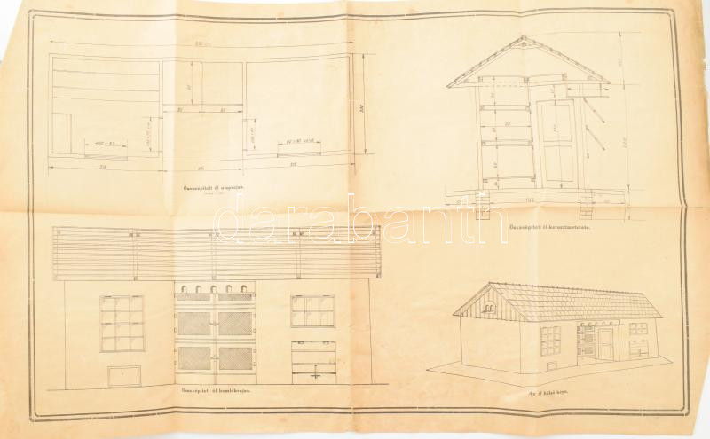 cca 1915-1930 M. Kir. Földművelésügyi Minisztérium összeépített baromfi-, nyúl- és sertés- vagy kecskeól tervrajza. Kaposvár, Uj-Somogy Nyomda Rt. Hajtva, kisebb sérülésekkel, 67,5x42 cm