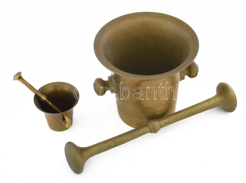 2 db Réz mozsár törővel m: 13 cm, 5 cm https://www.darabanth.com/de/477-Fernauktion/477.0/Kunst-Dokumente-andere-Sammelgebiete/Flohmarkt~1000017/2-db-Rez-mozsar-torovel-m-13-cm-5-cm~II3252505
