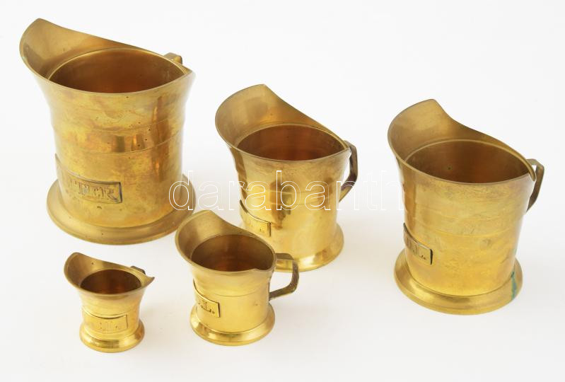 5 darabos réz mérceedény szett, 2cl-0,5l, m: 4,5-10,5 cm https://www.darabanth.com/de/477-Fernauktion/477.0/Kunst-Dokumente-andere-Sammelgebiete/Flohmarkt~1000017/5-darabos-rez-merceedeny-szett-2cl-0-5l-m-4-5-10-5-cm~II3242925