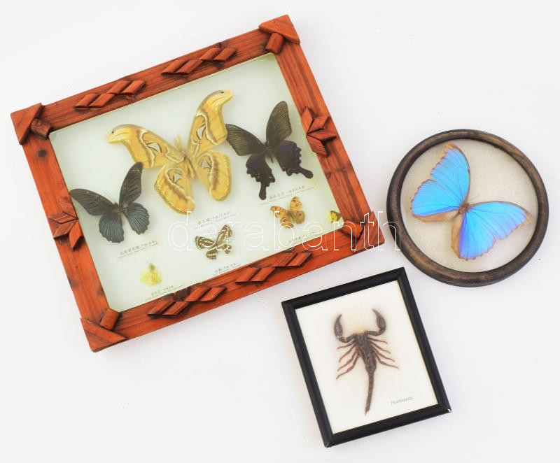 Preparált lepkék, óriáslepke és skorpió, üvegezett tartókban https://www.darabanth.com/de/477-Fernauktion/477.0/Kunst-Dokumente-andere-Sammelgebiete/Flohmarkt~1000017/Preparalt-lepkek-oriaslepke-es-skorpio-uvegezett-tartokban~II3248772