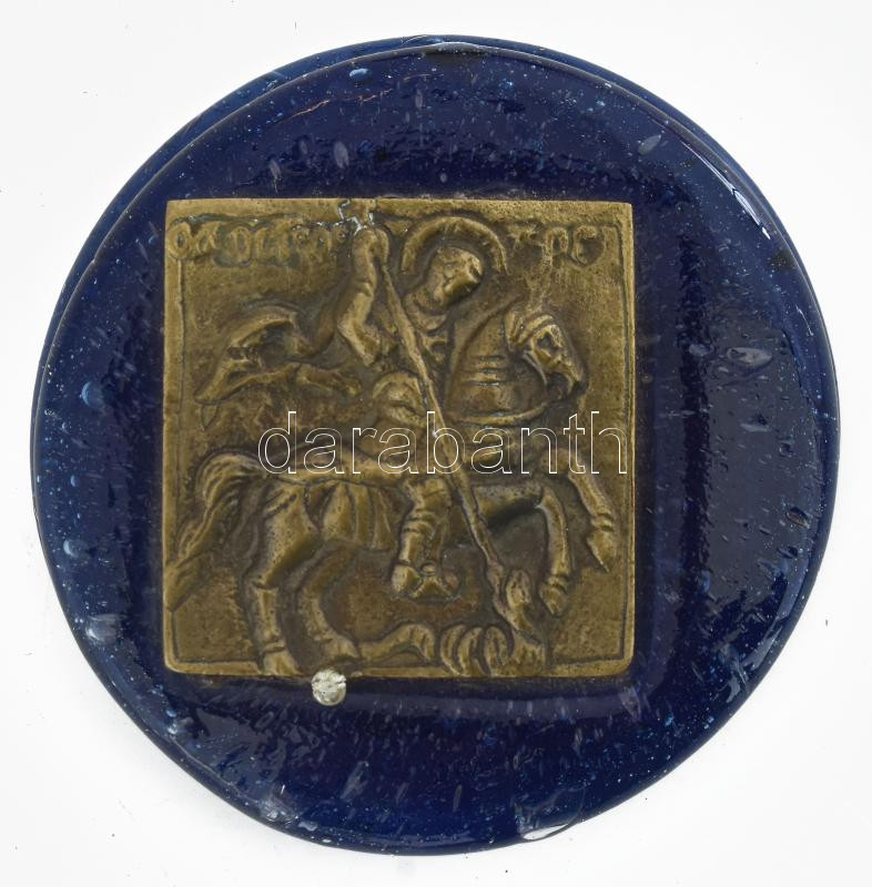 Sárkányölő Szent György levénehezék, réz, üveg d: 8,5 cm https://www.darabanth.com/de/477-Fernauktion/477.0/Kunst-Dokumente-andere-Sammelgebiete/Flohmarkt~1000017/Sarkanyolo-Szent-Gyorgy-levenehezek-rez-uveg-d-8-5-cm~II3227798