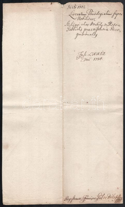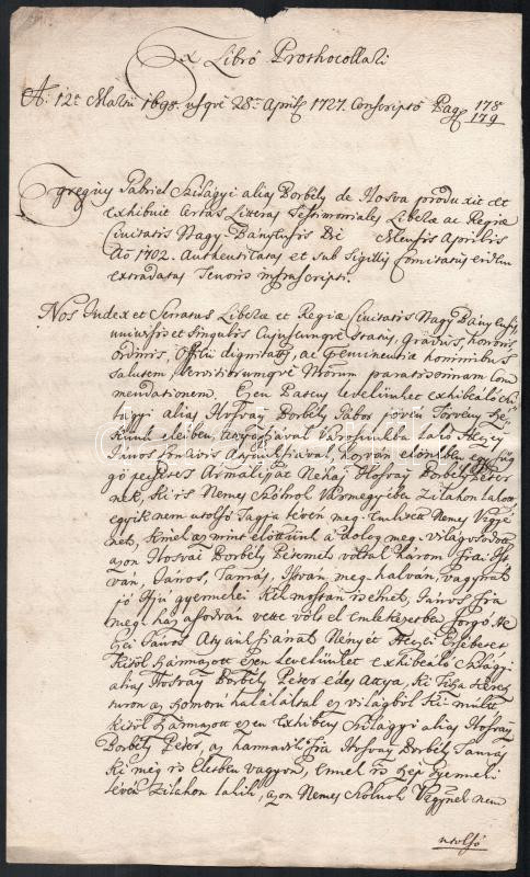 1727 Az ilosvay Szilágyi vagy Borbély család nemességével kapcsolatos okmány. Nagybányán bemutatott bizonyságlevél alapján Nagybánya bírája és szenátusa elismeri