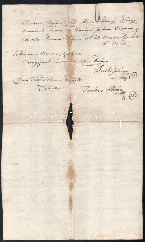 1796 Füzesgyarmatról a mogyorósi Ilosvay Ferencnek küldött levél Fülpösre több helyi neme áltat aláírt és levélbe írt oklevél másolattal + 1732 Szatmár megye előtti jegyzőkönyv magyar nyelven