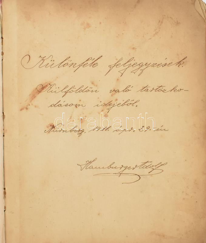 1911 Hamburger Adolf lakatos munkás kézzel írt naplója. Sztrájk alkalmával felmondott férfi naplója nürnbergi munkavégzésekor. Kb 100 oldal