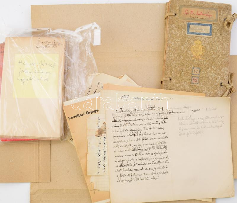 Beschreibung: Herzog József (1880-1941) levéltáros, történész, a Magyar Tudományos Akadémia tagja jegyzetei, kéziratai egy mappányi anyag