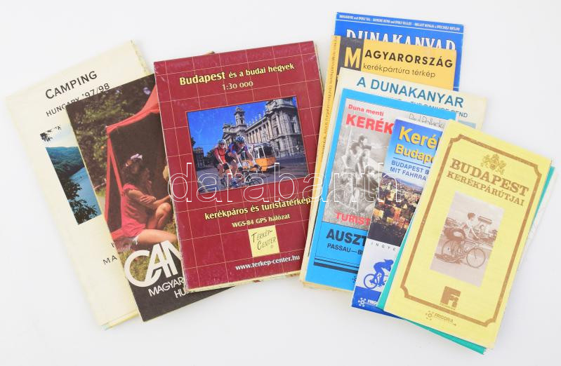 Beschreibung: 12 db kerékpáros térkép, kemping- és turistatérkép, vegyes állapotban