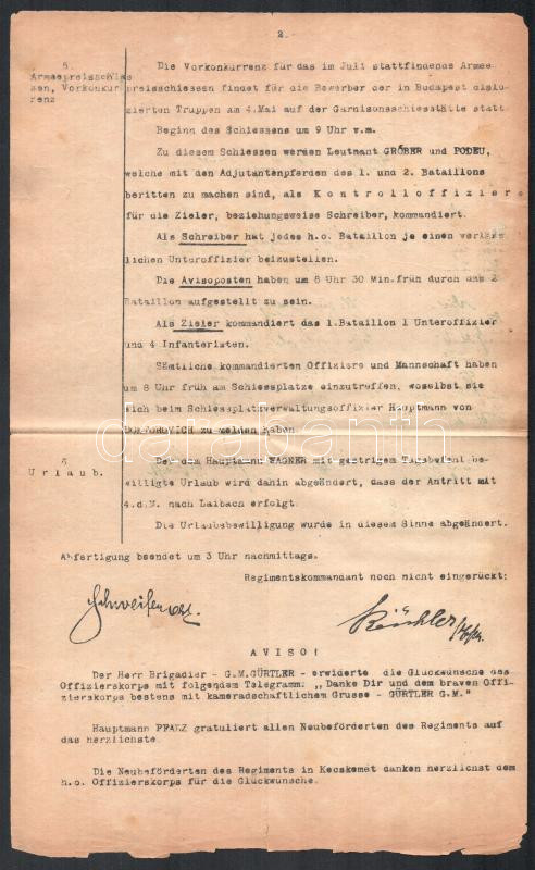 Beschreibung: 1898-1908 K.u.k. Infanterie Regiment Freiherr von Mollinary No. 38. katonai parancs, napi parancs
