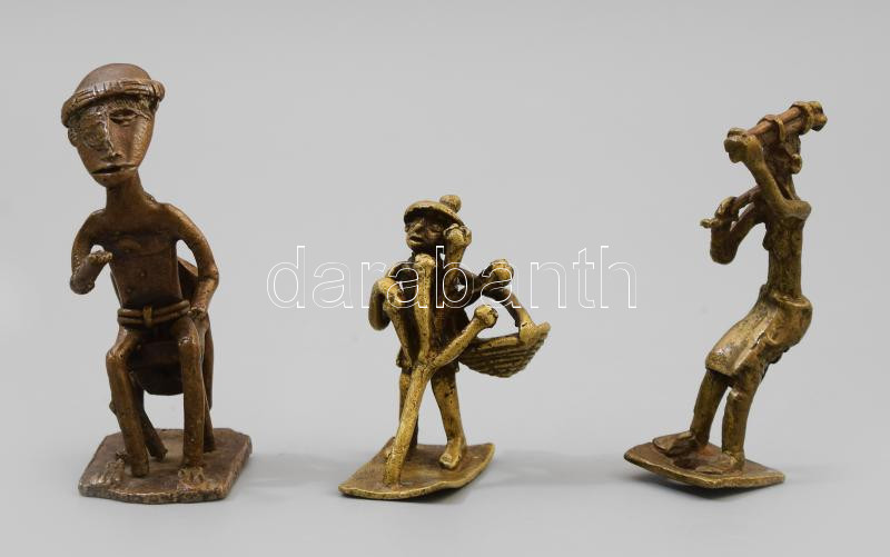 3 db afrikai réz szobrok, Gabon, 5-9 cm