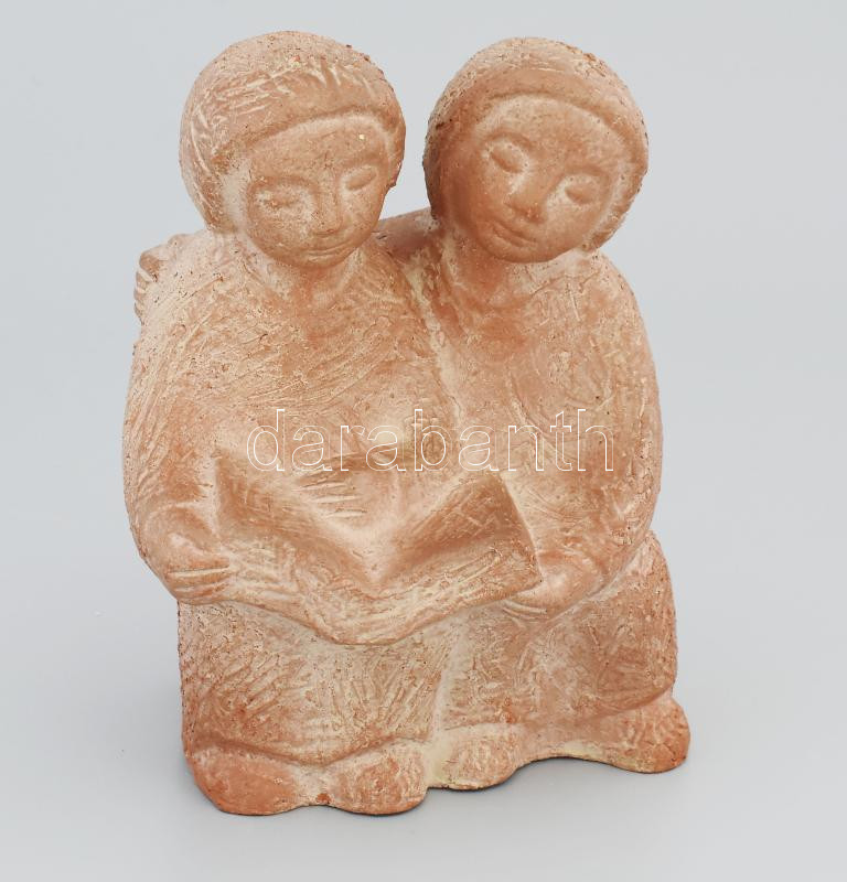 Johannes Fischedick (német 1908-1984): Olvasó gyermekpár. Terrakotta, jelzés nélkül, m: 18,5 cm