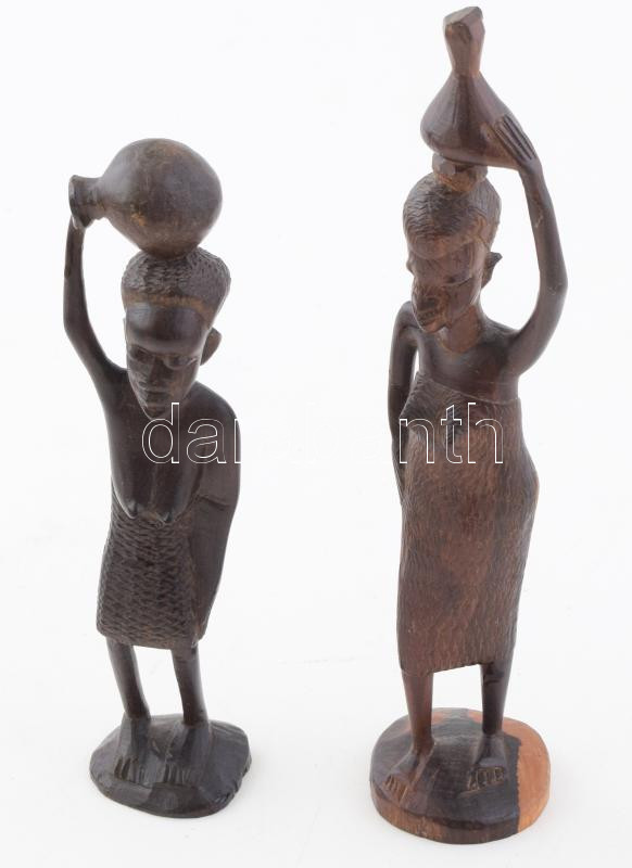Korsót cipelő pár figuratív afrikai keményfa faragások, egyik sérült 18, 23 cm
