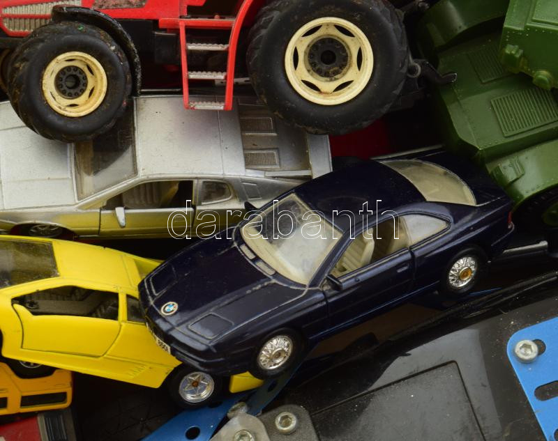 Beschreibung: 14 db játék autó, tank, fém és műanyag