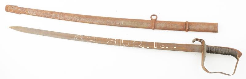 Antik szablya, jelzés nélkül, fém hüvellyel, korrodált, h: 89 cm https://www.darabanth.com/de/477-Fernauktion/477.0/Kunst-Dokumente-andere-Sammelgebiete/Waffen-Messer~2000008/Antik-szablya-jelzes-nelkul-fem-huvellyel-korrodalt-h-89-cm~II3252731