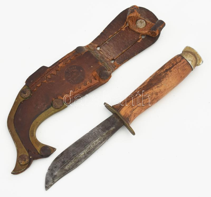 Finn kés, jelzett, sérült bőr tokban, h: 15 cm https://www.darabanth.com/de/477-Fernauktion/477.0/Kunst-Dokumente-andere-Sammelgebiete/Waffen-Messer~2000008/Finn-kes-jelzett-serult-bor-tokban-h-15-cm~II3244981