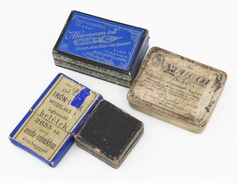 Beschreibung: 4 darab régi kis doboz, közte Wintermantel Szombathely dobozka